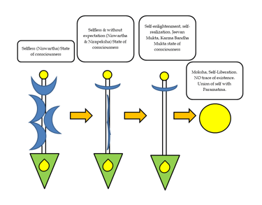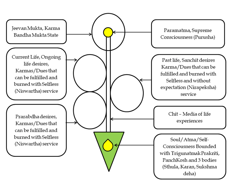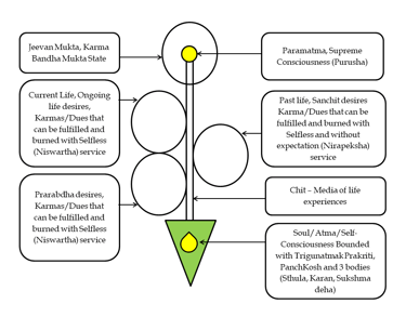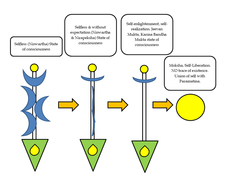 OM is universal consciousness represented with 4 States of self-consciousness. Waking State, Dreaming State, Sushupti state and Turiya state. Decoding OM will showcase how fulfilling desires (Trupta Atma) and paying dues of your past and present life will evolve self-consciousness to unite self/soul with universal soul (Atma with paramatma)