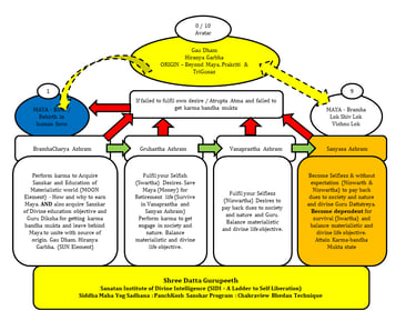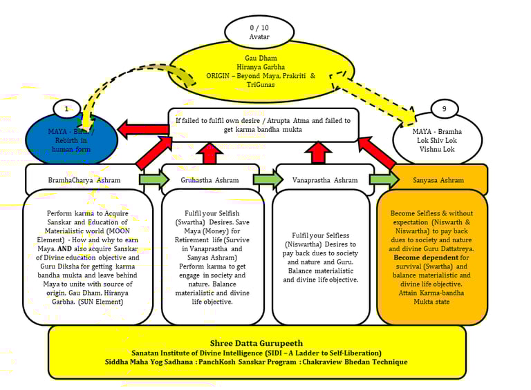 At Shree Datta Gurupeeth, with the help of world's unique SIDI-Framework, we help every seeker, follower to get on the path of the self-liberation (Moksha Path) thus enable to get him/her exit from the wheel of birth and death and directly contribute towards Environmental Sustainability reducing burden on this Prakriti.