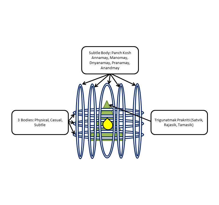 Soul bounded by PanchKosh, 3 bodies and Prakriti